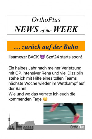 OrthoPlus München freut sich mit allen Athleten, die im Januar 2024 nach zum Teil langer Leidens- und Reha-Zeit wieder zum Wettkampfsport zurückkehren. DANKE an all unsere Partner für die intensive Unterstützung. Und den Athletinnen und Athleten: Bleibt gesund und genießt Eure Leidenschaft!